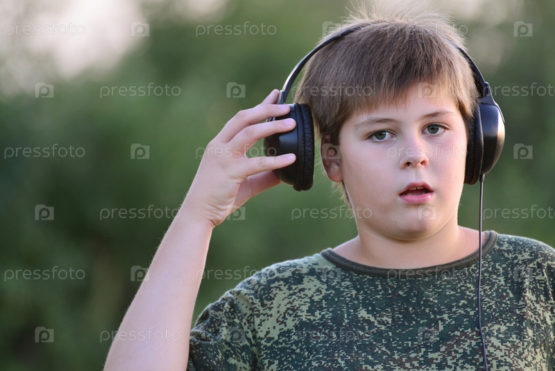 Мальчик, слушать музыку с наушниками