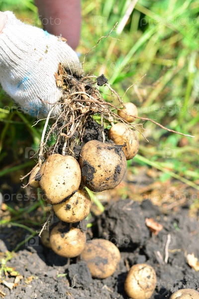 Свежих клубней картофеля в руках
