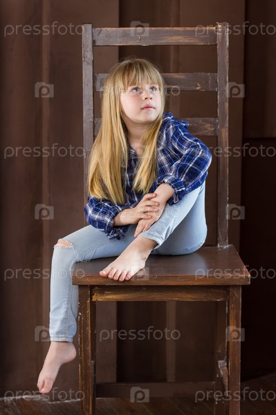 Девочка 6 лет сидит на высоком стуле