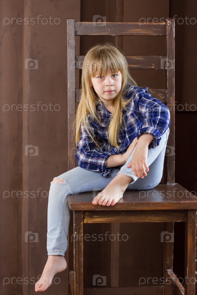 Девочка 6 лет сидит на высоком стуле