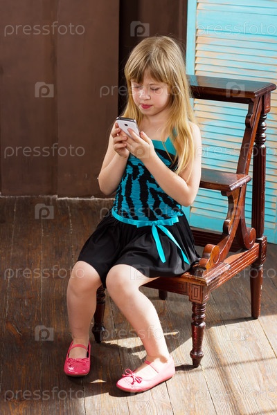 Маленькая девочка играть с мобильного телефона