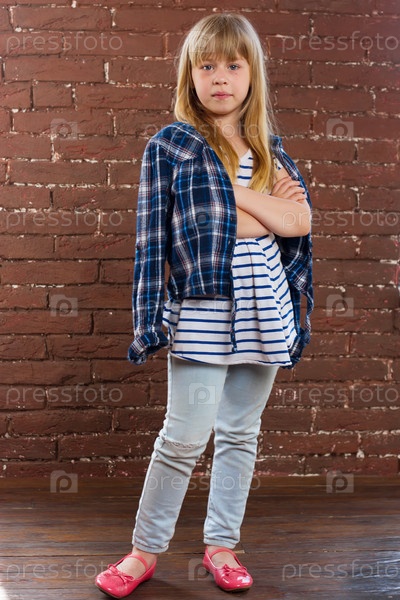 Девочка 6 лет в джинсы и рубашке