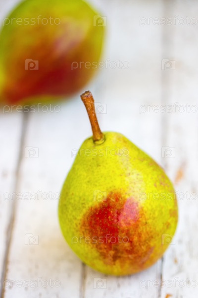 Зеленая груша с красной стороны