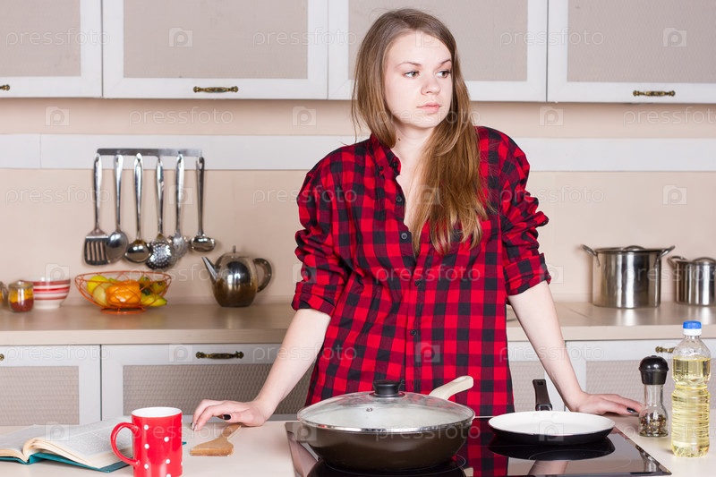 Девушка готовит на кухне