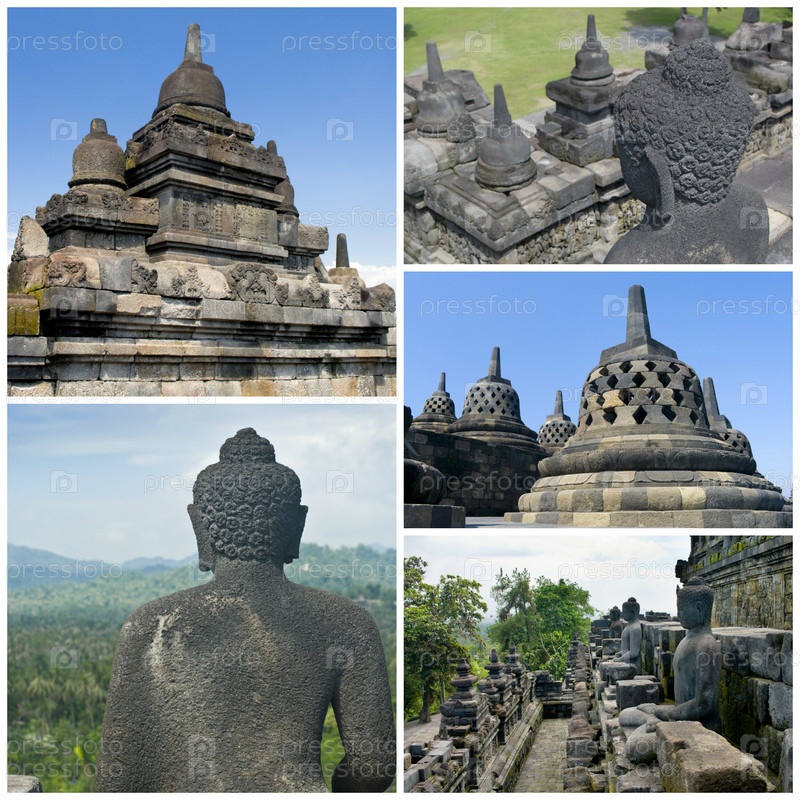 Коллаж изображений буддиский храм Боробудур