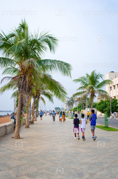 Люди на набережной в Пондичерри, Индия