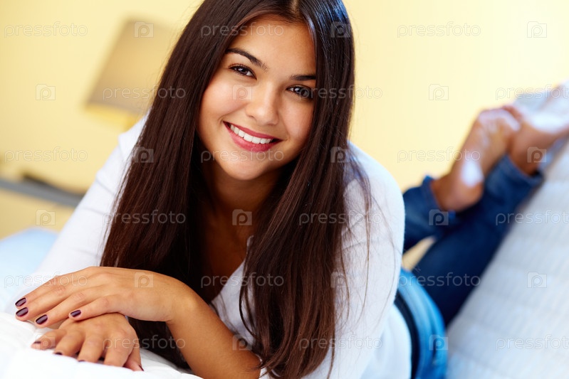 Беззаботная девушка на диване