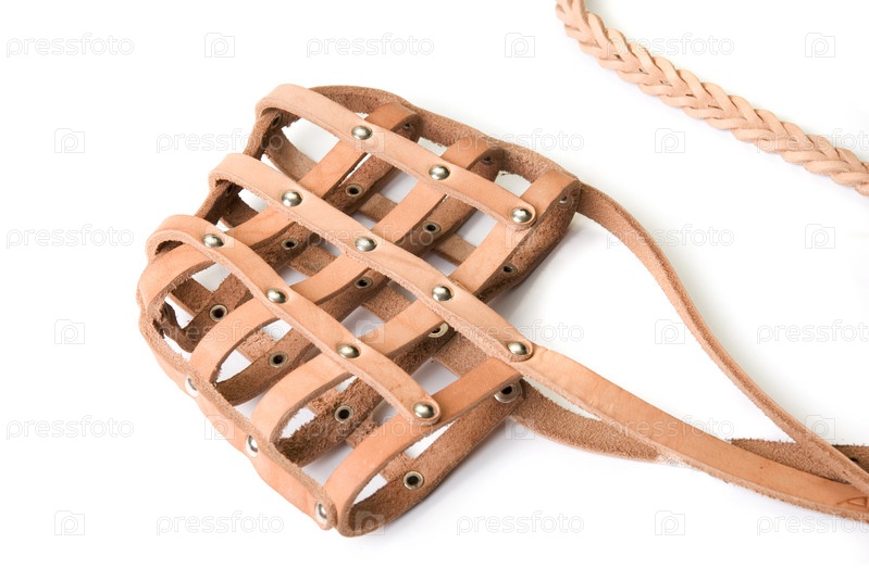 Кожаный намордник на белом фоне