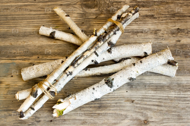 Березовые стволы деревьев и ветвей на фоне естественной древесины
