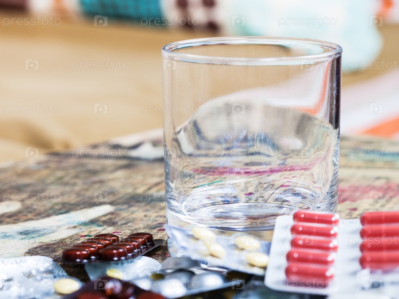 Пустой стакан и кучу таблеток