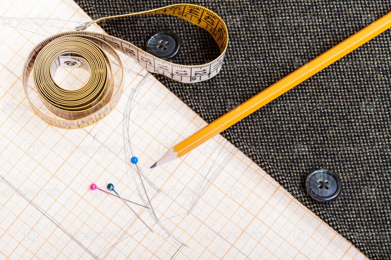 Шаблон, ленты мера, карандаш, булавки, жакет