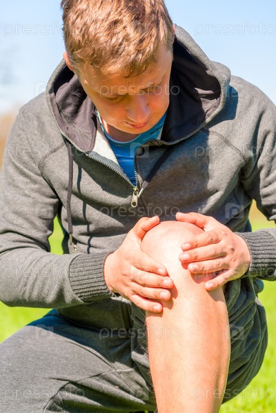 Спортсмен осматривает больное колено