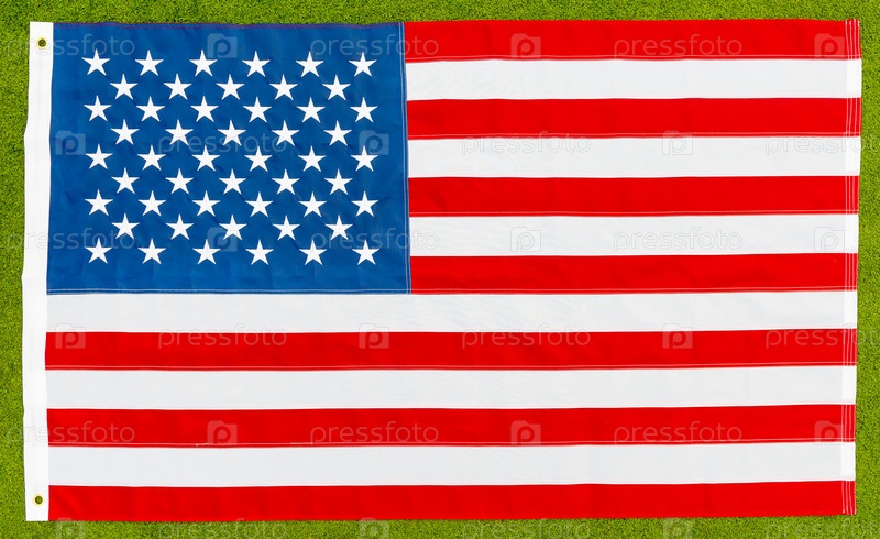 Национальный флаг Соединенных Штатов, лежа на лужайке