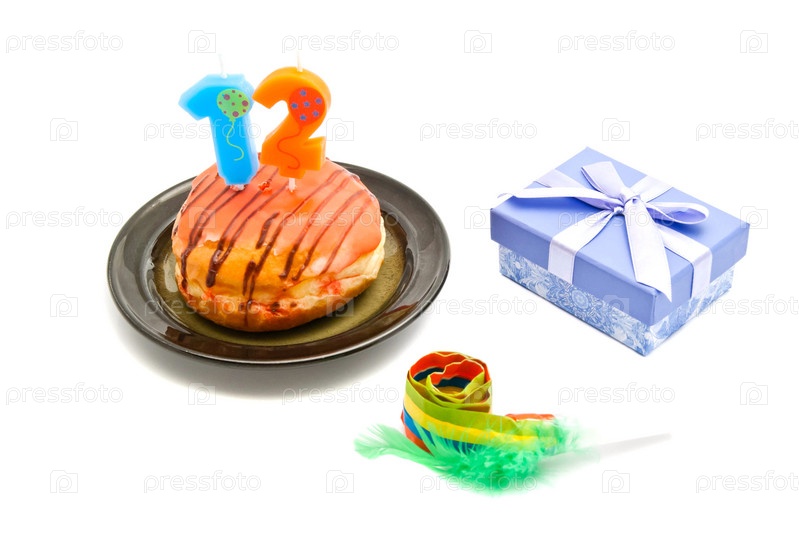 Пончик с двенадцати лет день рождения свечи, свисток и подарок