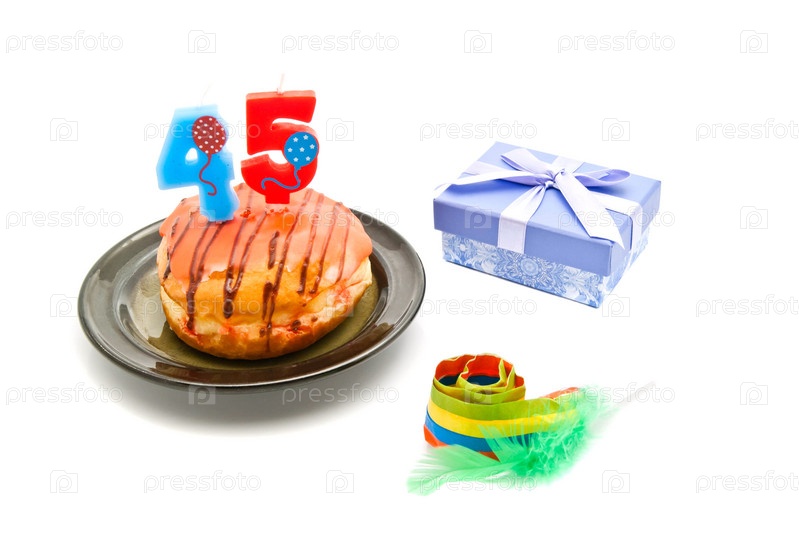 Пончик с сорока пяти лет день рождения свечи, свисток и подарок