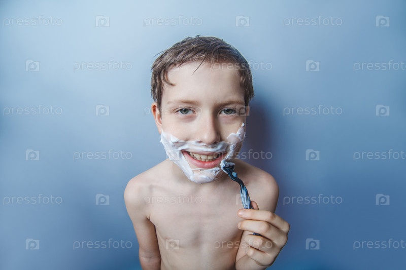 Мальчик бреет лицо
