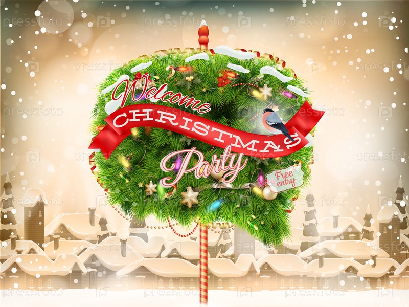 Деревянные баннер с Рождественская елка ветви