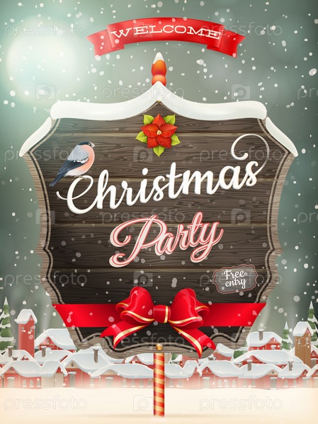 Деревянные баннер с Рождественская елка ветви