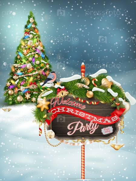 Деревянные баннер с Рождественская елка ветви