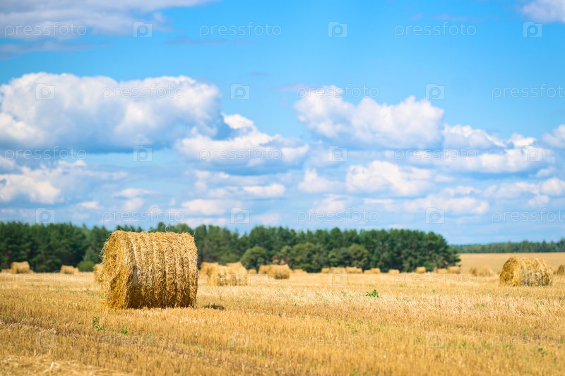 Сельский пейзаж: стога сена в поле