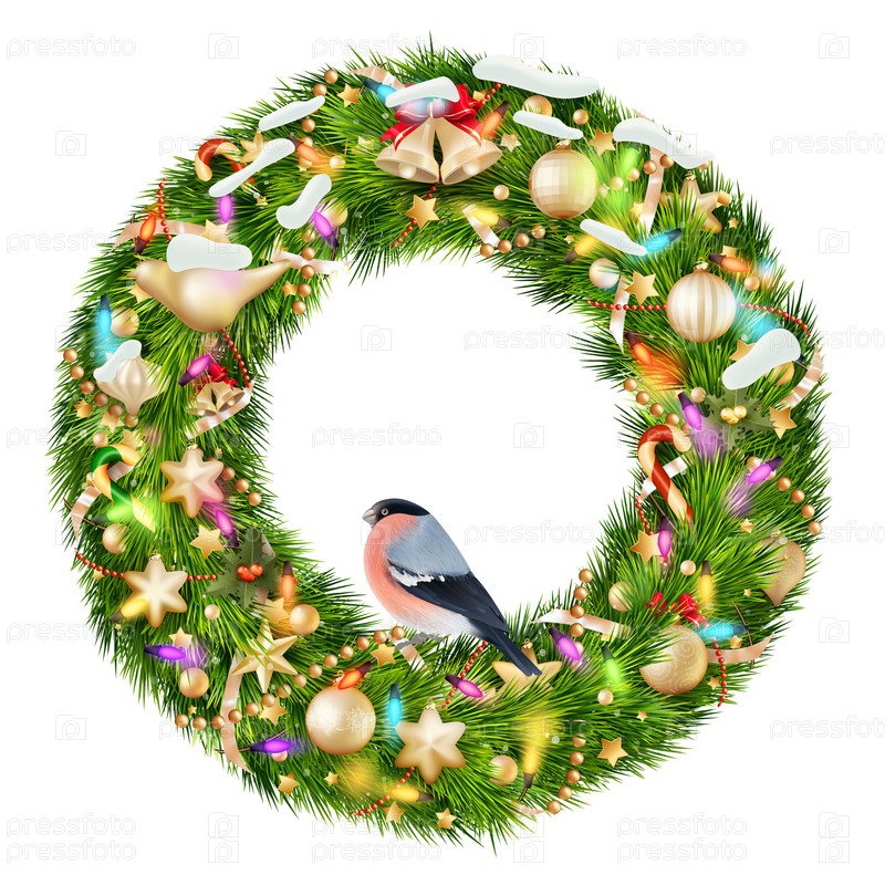 Зеленый Рождество венок с украшениями