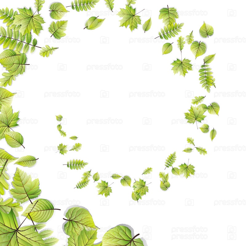 Зеленые листья кадра, изолированные на белом фоне