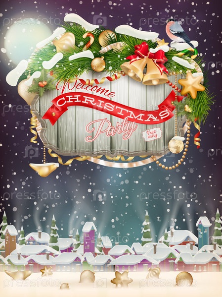 Деревянные баннер с Рождественская елка ветви