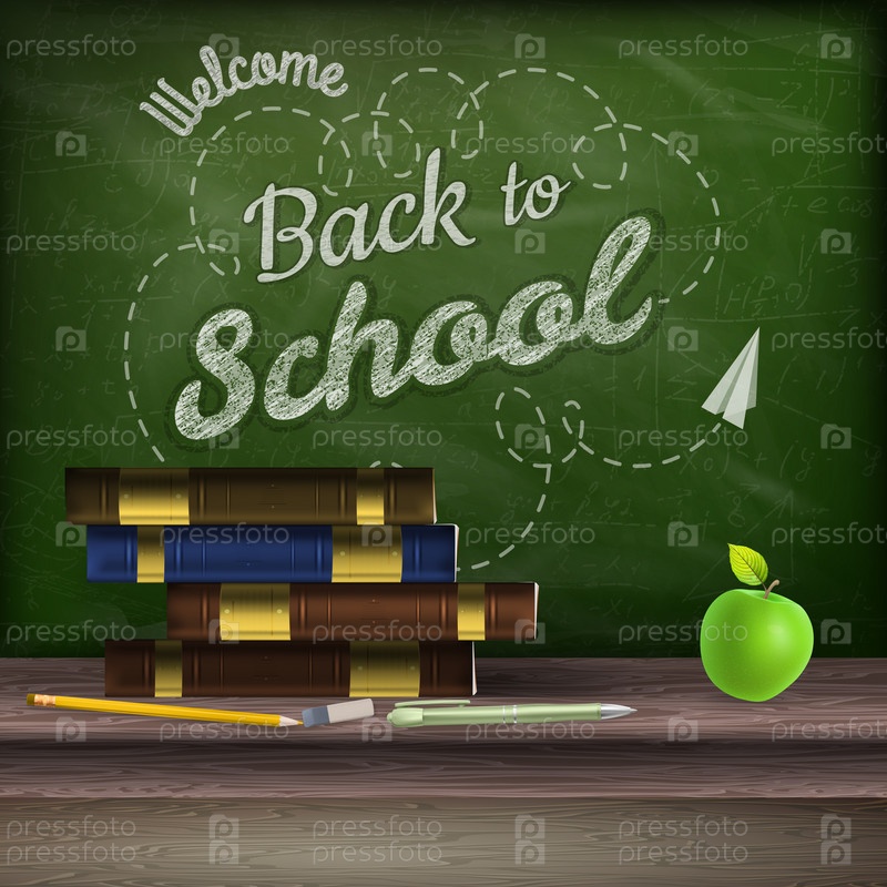 Школьные учебники и яблоко