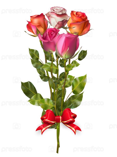 Букет роз с красным бантом. EPS 10