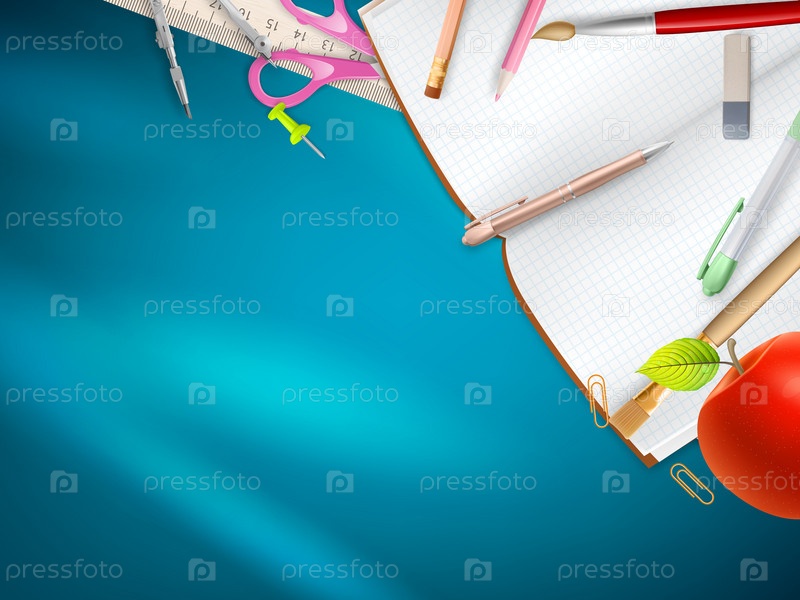 Школьные принадлежности на синем фоне. EPS 10