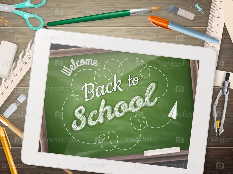 Обратно в школу иллюстрации с планшетом