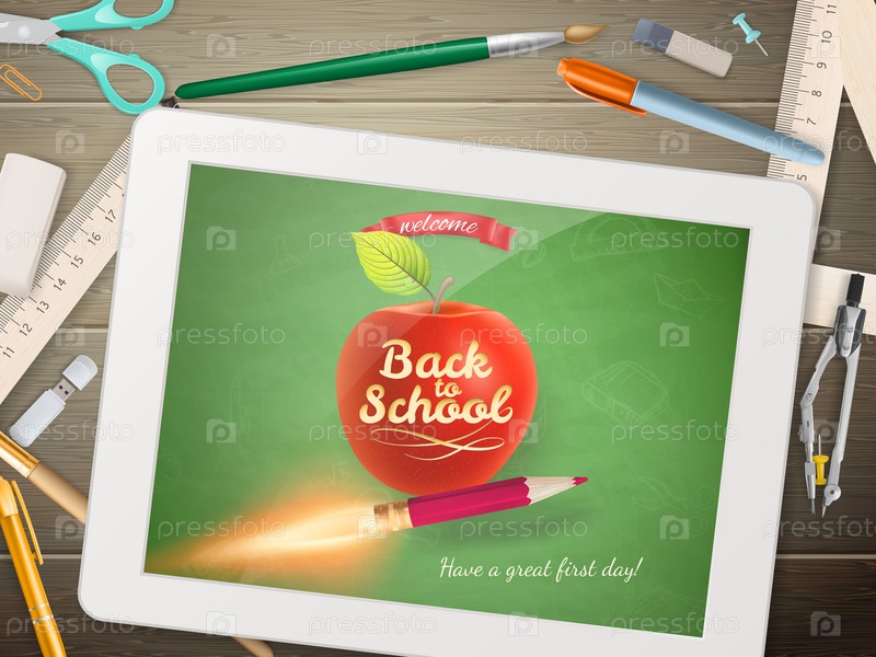 Возвращение в школу иллюстрации с планшета. EPS 10