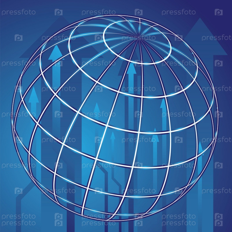 Абстрактное изображение земного шара на синем фоне со стрелками