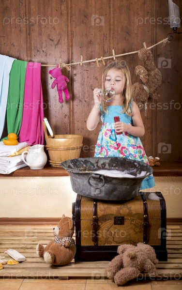 Девочка пускает мыльные пузыри