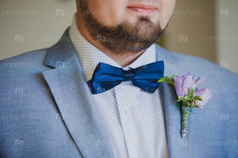 Крупным планом элегантный жених с бабочкой и бутоньеркой