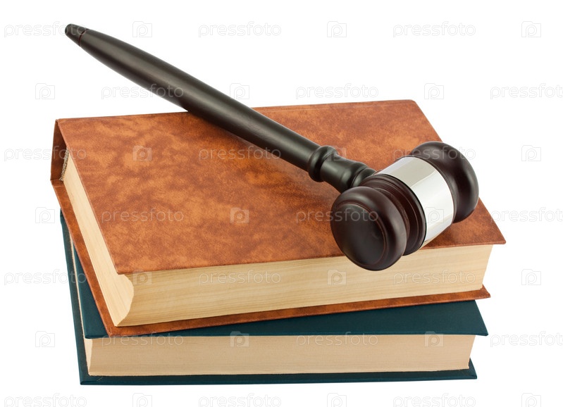 Книги и молоток на белом фоне