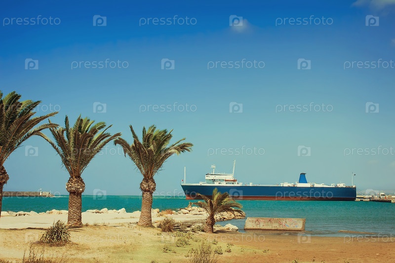 Пейзаж: вид порта и корабль в городе Ретимно, Крит, Греция