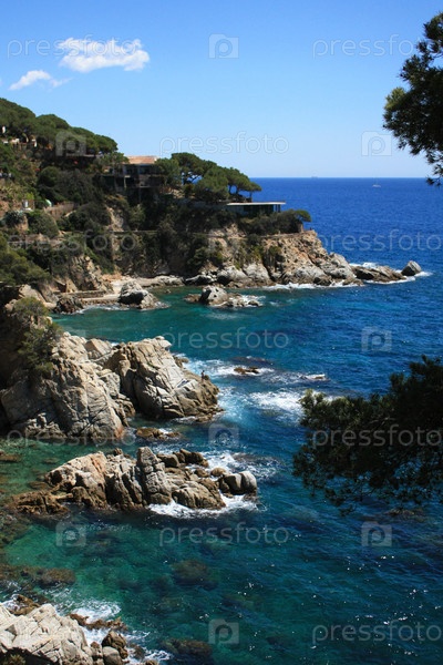 Вид на море с берега города Ллорет-де-Мар в Испании