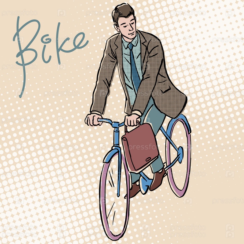 Бизнесмен на велосипеде ретро стиль поп-арт