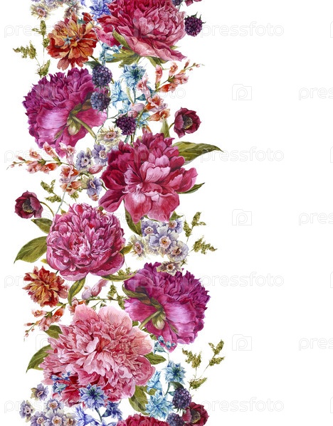 Цветочные бесшовные акварель границы с бордовой пионов