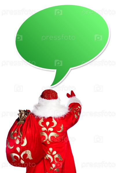 Дед Мороз с мешком подарков на белом фоне