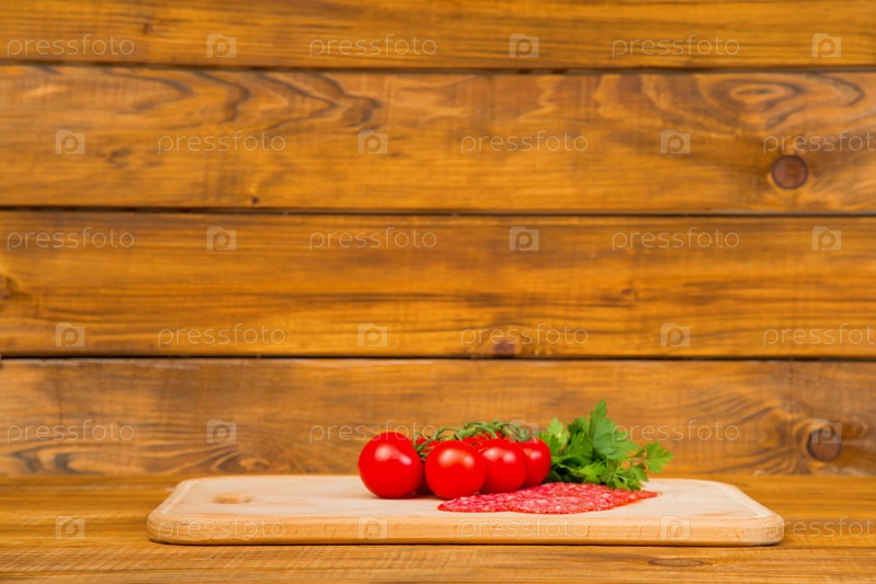 Помидоры с ломтиками колбасы