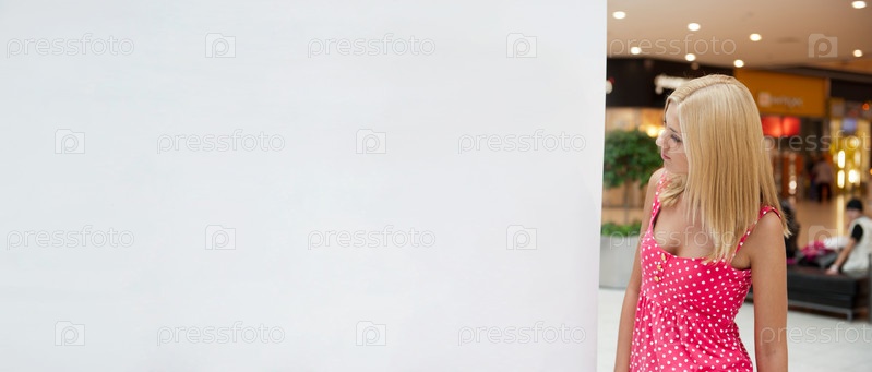 Молодая симпатичная девушка с покупками в торговом центре