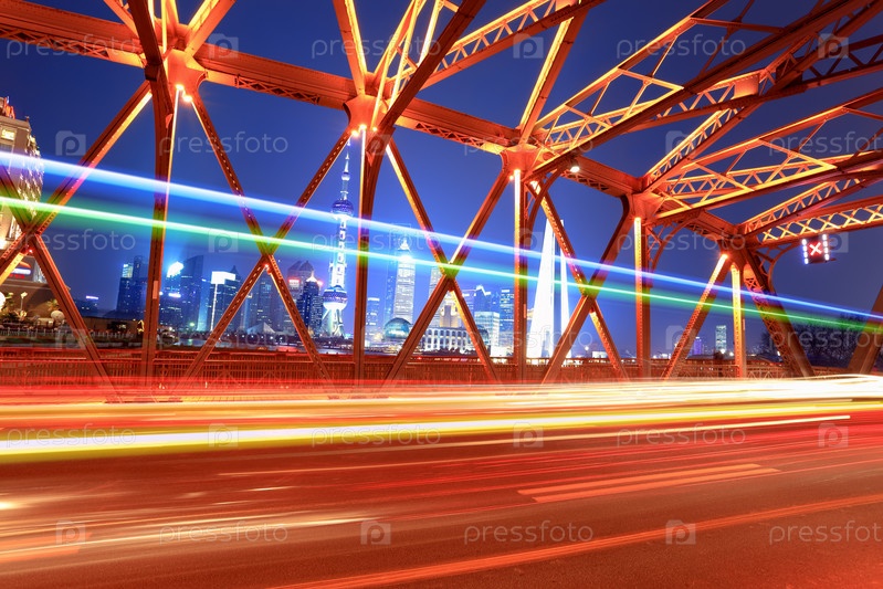 Красивая Ночная съемка моста в Шанхай