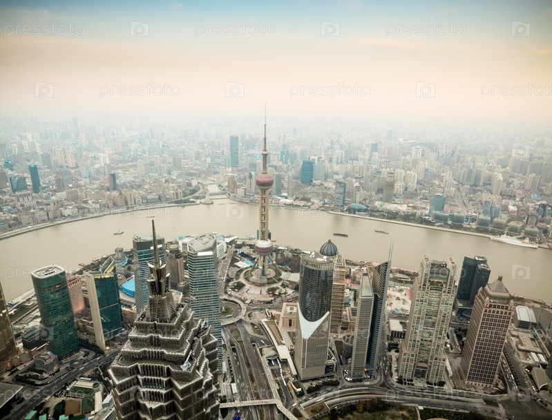 Панорамный вид из Шанхая в сумерках