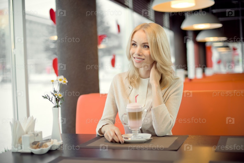 Молодая женщина в кафе