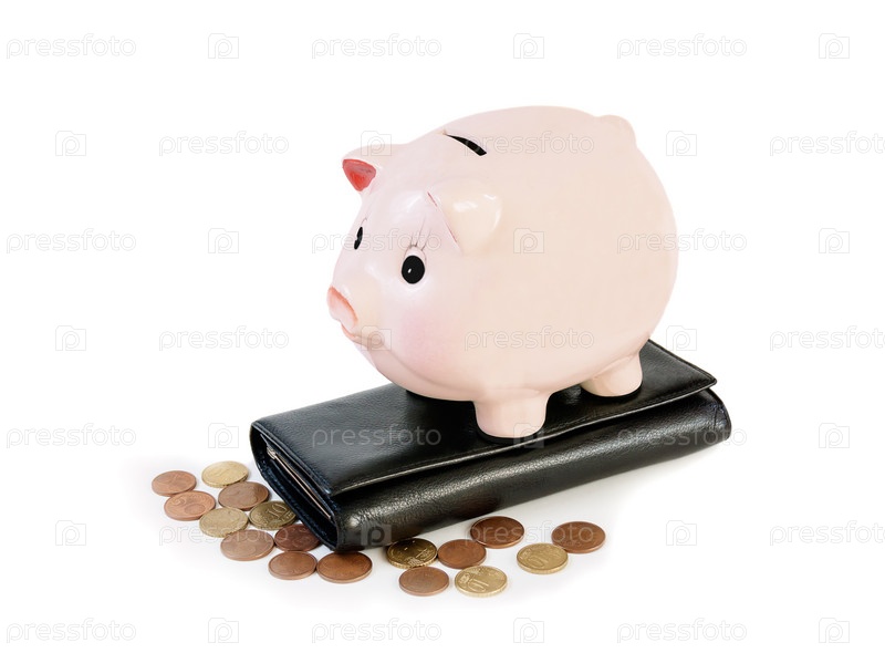 Концепция накопления денег. Деньги и копилку, изолированные на белом фоне
