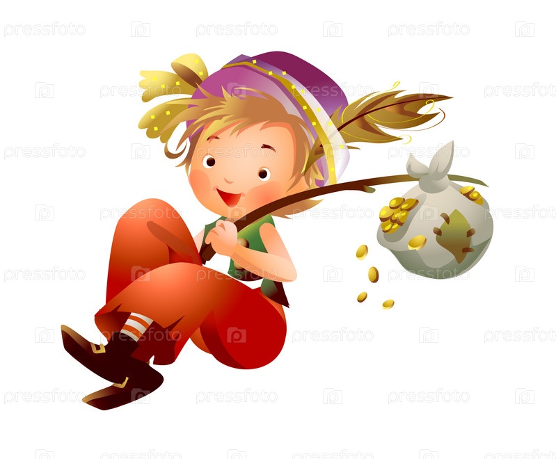 Мальчик, перевозящих пучок золотых монет на палочке