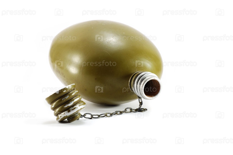 Старый военный фляга на белом фоне