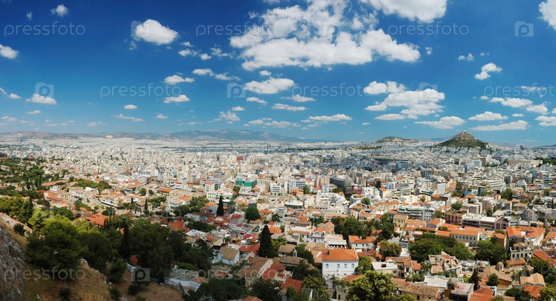 Панорама Афин мегаполиса от холма Акрополь, Греция